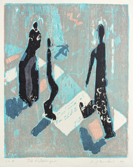 Der Grafiker und Maler Peter Mendau hat sich seit Ende der 1970er Jahre in besonderem Maße dem farbigen Holzschnitt zugewandt. Die Strukturen des Holzes förderten eine Straffung des kompositorischen Bildgefüges, eine Verstärkung des Zeichencharakters und damit auch die Transparenz seiner Blätter. Peter Mendau schloss dabei nicht so sehr an die klassische Schwarzweiß- oder an die von starken Farbkontrasten lebende Gestaltung der Erneuerer des Holzschnittes wie Edvard Munch oder die Künstler der Dresdner „Brücke“ an, sondern suchte im Vielfarbendruck (bis zu sieben Platten) die pastellartige, sublimierte Farbwirkung.